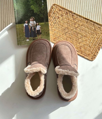 Imitation lamb wool round head flat-bottomed short boots, cute winter warm snow boots