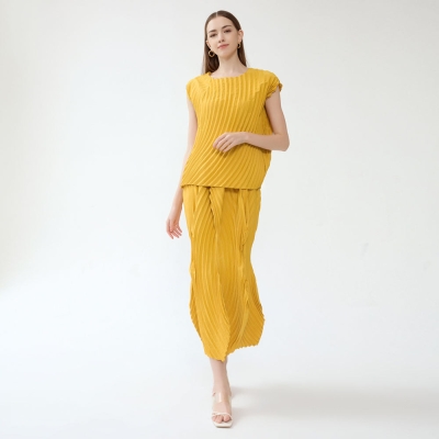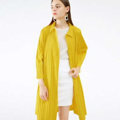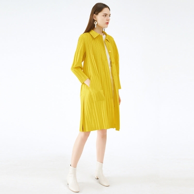 Irregular Two-Piece Long Sleeve Gradient Coat Collar Temperament Leisure Pleated Dress