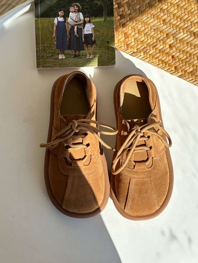 Leather round head Birkenstocks spring new belt buckle versatile soft sole single shoes