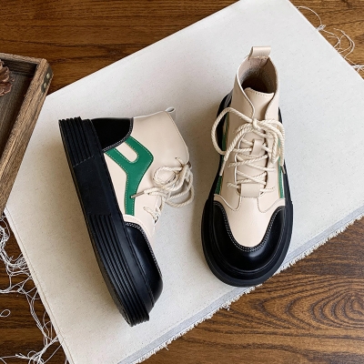 Leather round head lace-up flat shoes comfortable soft baseplate shoes women