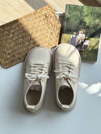 Leather round head lace-up thick-soled big head shoes spring height-increasing white shoes