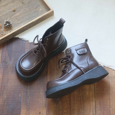 Leather Round Head Platform Big Head Shoes Button Short Boots Martin Boots Children