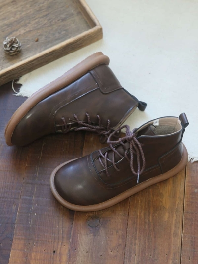 Round Head Flat Bottom Big Head Short Boots Comfortable Low Heel Boots Women