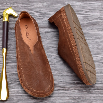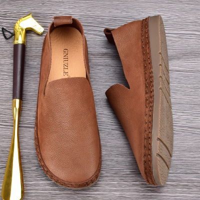 Single-layer cowhide men's shoes summer breathable casual leather shoes men's leather soft-soled lightweight loafers one-pedal lazy shoes