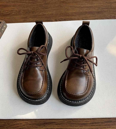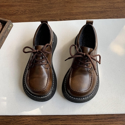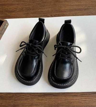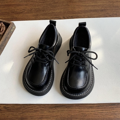 2024 Autumn Women's Thick Sole Leather Shoes British Style