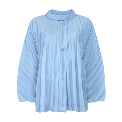 Women's Solid Color Basic Pleated Long-Sleeved Loose Leisure Windproof Jacket
