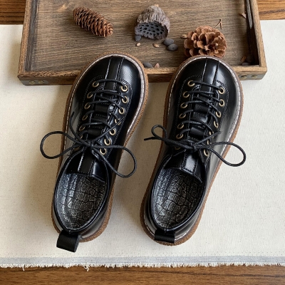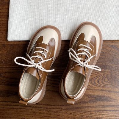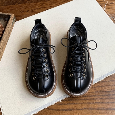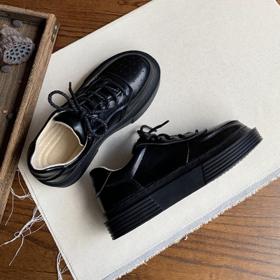 Autumn small leather shoes women's round-headed thick-soled casual shoes
