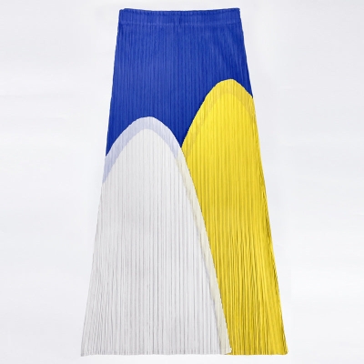 Pleated Skirt Commute Style Type a Mid-Length Summer Printed Pleated Skirt for Women