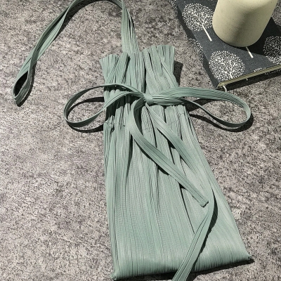 Solid Color round Neck Two-Piece Handmade Pleated Skirt Slim Top for Women