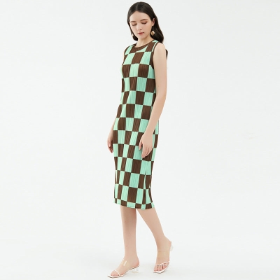 Loose Design Sleeveless Draping Elastic Skirt Folding Long Pleated Casual Dress