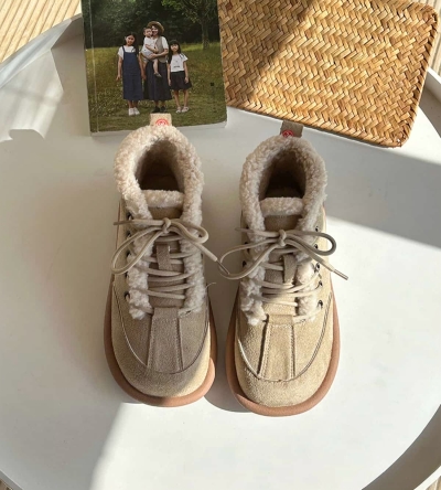 Imitation lamb wool round head thick-soled short boots winter leather warm snow boots